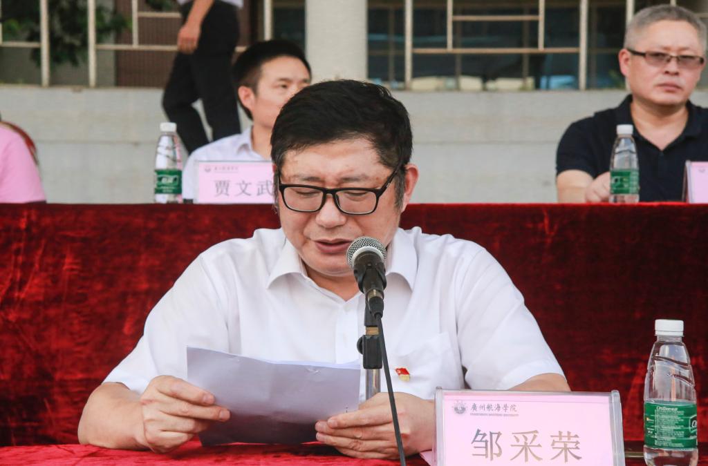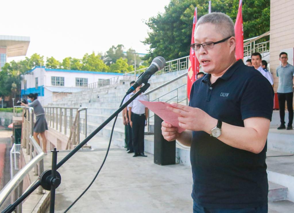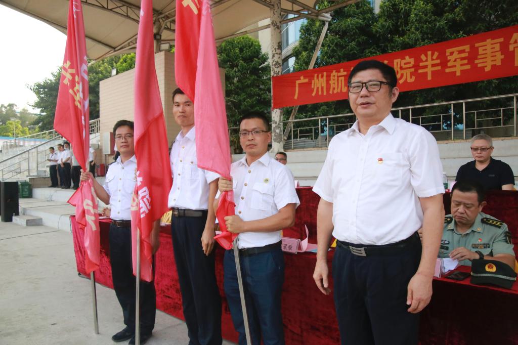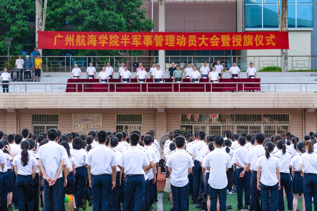 9月3日下午,半军事管理动员大会暨授旗仪式在黄埔校区田径运动场隆重举行。全体校领导、半军事管理领导小组成员、黄埔区人武部政委魏华以及黄埔区校友会会长张全慨出席了大会,明胜m88官网、明胜m88官网、船舶与海洋工程学院全体学生参加了大会。大会由党委副书记、纪委书记招乐辉主持。