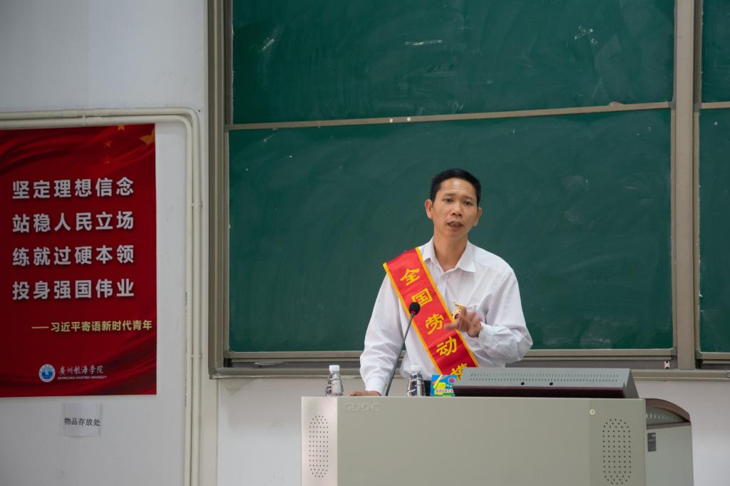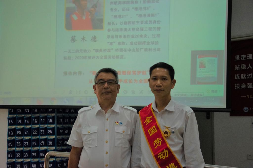 (学工处 供稿)为深入学习贯彻习近平总书记在全国劳动模范和先进工作者表彰大会上的讲话精神,用劳动模范的榜样力量激励广大青年学子坚定理想信念、立志成才报国,420日,2020年全国劳动模范、广州港股份有限公司拖轮分公司船务部副经理、我校1994届船舶驾驶专业校友蔡木德船长应邀回到母校,与200多名师生代表齐聚健兵北400课室,围绕“要为进出口船舶保驾护航——从一名普通水手成长为全国劳模”这一主题作交流报告。