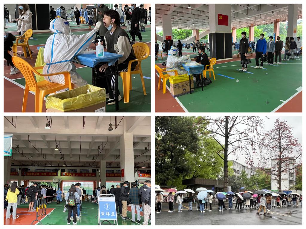 核酸检测现场,各学院严格按照前期工作安排,分批分期组织学生前往核酸检测点。师生严格按照防控要求佩戴口罩,保持一米间距,由工作人员和志愿者指引逐一接受采样,各项工作井然有序开展。