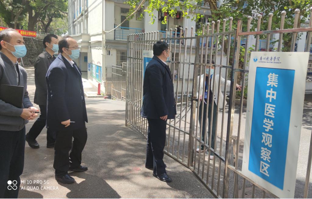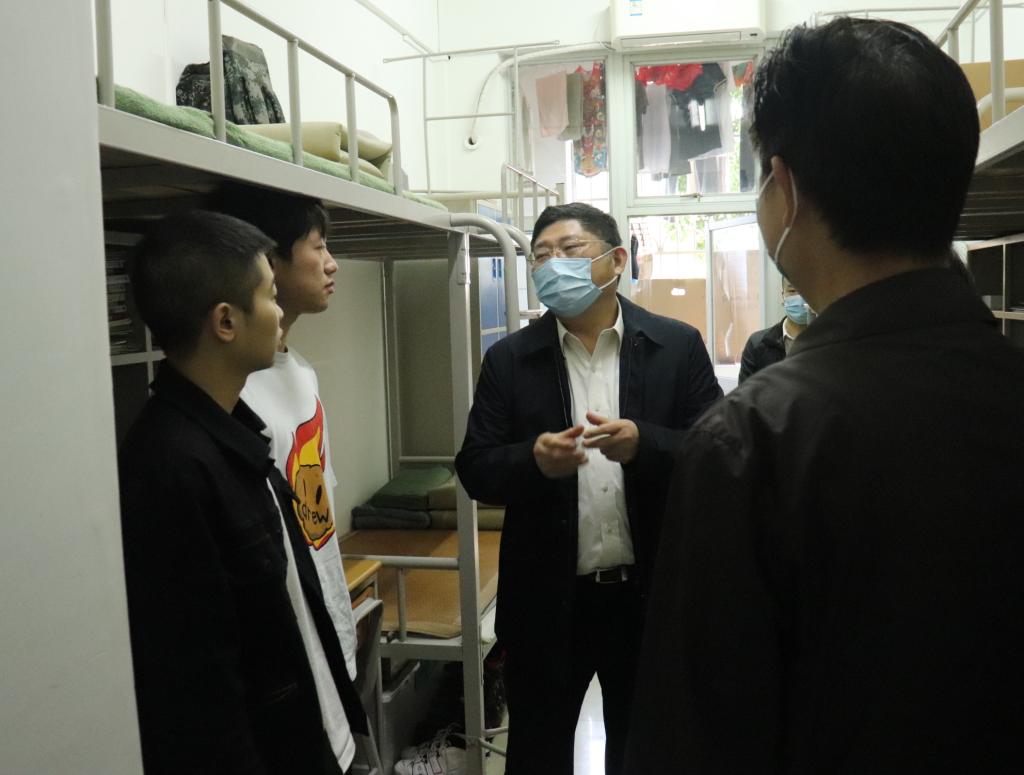 在学校集中医学观察区外,邹书记向值班人员详细询问了目前集中观测的学生身体情况、思想情况以及生活保障服务等情况,指出要多给予人文关怀,做好学生的思想开导和心理疏导,解决好生活服务保障。