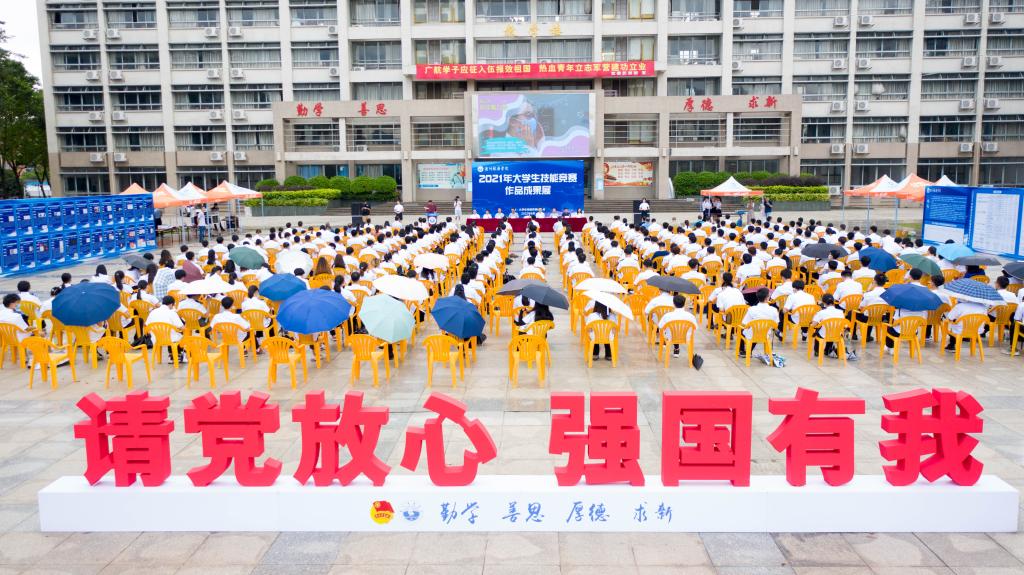 (学工处 供稿)仲夏时节,万物丰茂;青春激扬,意气风发。为进一步激励先进,发挥带头作用,激发广大师生参与技能竞赛的热情,更好地营造校园科技文化良好氛围,6月16日下午,大学生技能竞赛委员会在海燕广场隆重举行2021年大学生技能竞赛作品成果展暨表彰大会。校党委书记、校长邹采荣,副校长唐强荣出席大会,学工处、教务处、科研处、人事处、财务处、公体部、校团委等部门负责人,各二级学院院长、党委副书记、科研副院长,全体辅导员以及学生代表近400人参加会议。大会由学生工作处处长黄毅主持。