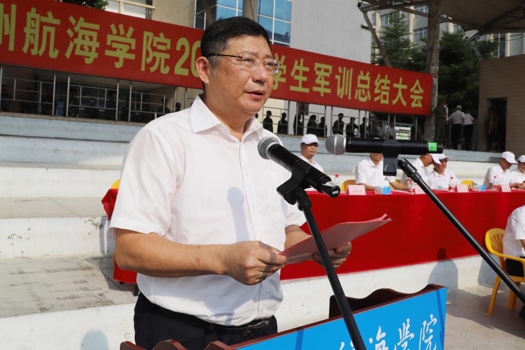 校党委副书记、纪委书记招乐辉向承训部队赠送“军民鱼水情深,共育航海英才”牌匾,与会校领导与段部长一起为军训期间表现优异的9个优秀方队和248名先进个人代表颁奖了锦旗和荣誉证书。