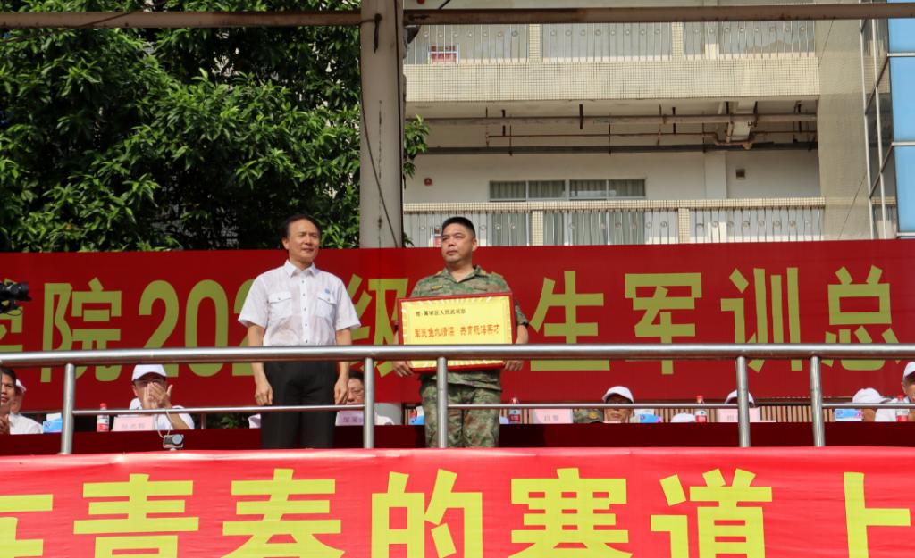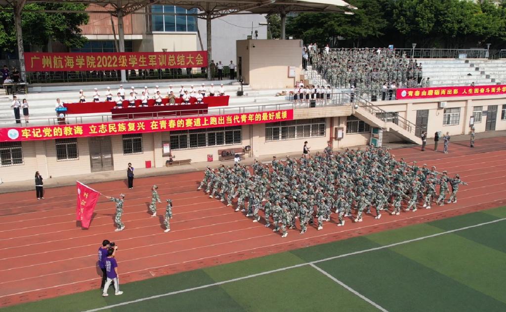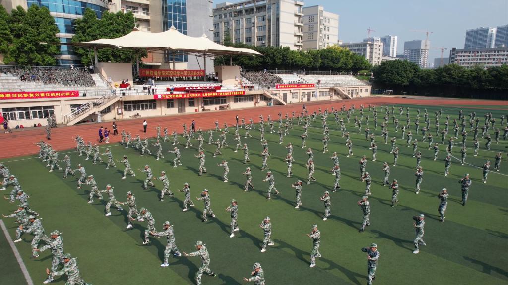 (武装部 供稿)扬帆新征程,一起向未来! 9月16日上午,我校2022级学生军训总结表彰大会在黄埔校区田径运动场隆重举行。校党委书记、校长邹采荣等校领导,黄埔区人民武装部段警部长,学校有关职能部门负责人,各二级学院党委书记出席大会。大会由校党委武装部部长黄毅主持。