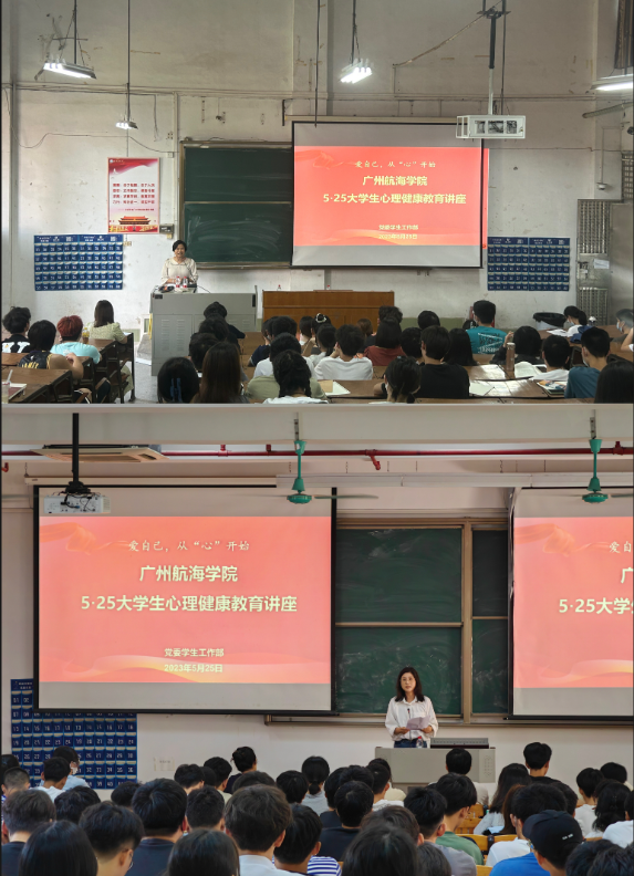(明胜m88官网 供稿)为了促进我校学生心理健康成长,培养学生良好的心理品质和自尊、自爱、自律、自强的优良品格,结合明胜m88官网2023年“5.25”大学生心理健康月系列活动开展计划,5月25日,党委明胜m88官网邀请了周海英博士分别在黄埔校区和琶洲校区为在校生开展《爱自己,从“心”开始》专题心理讲座。学校心理健康教育与咨询中心教师、各二级学院辅导员代表及两校区共300余名学生参与了本次讲座。