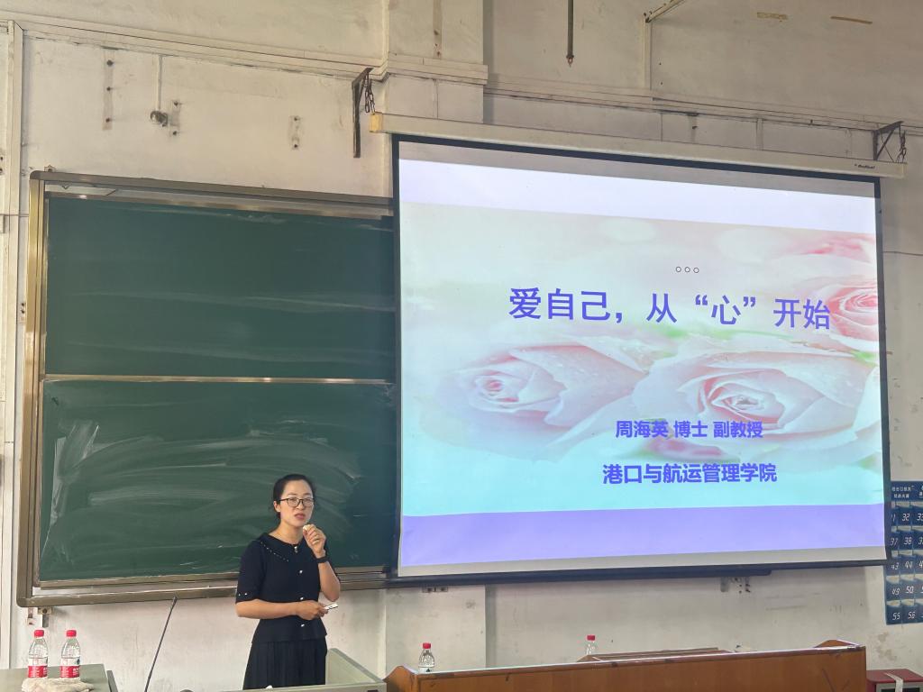 周海英博士为我校港口与航运管理学院副教授、国家二级心理咨询师、高级沙盘游戏咨询师。讲座伊始,周教授从缺乏自爱的七个迹象为出发点展开,向同学们普及了心理健康知识,她结合自身经历娓娓道来,与同学们亲切互动,详细讲述了心理学内在疗愈的三个阶段:觉察、接纳、行动,分享了情绪调节的策略和正确全面认识自我的方法,周博士深入浅出的讲解使同学们进一步认识到了解和关爱自我心理成长的重要性,并学会及时觉察情绪,接纳当下,进而促进自我成长。
