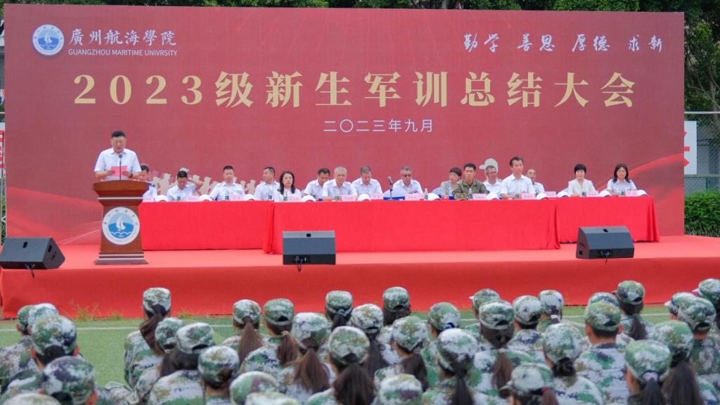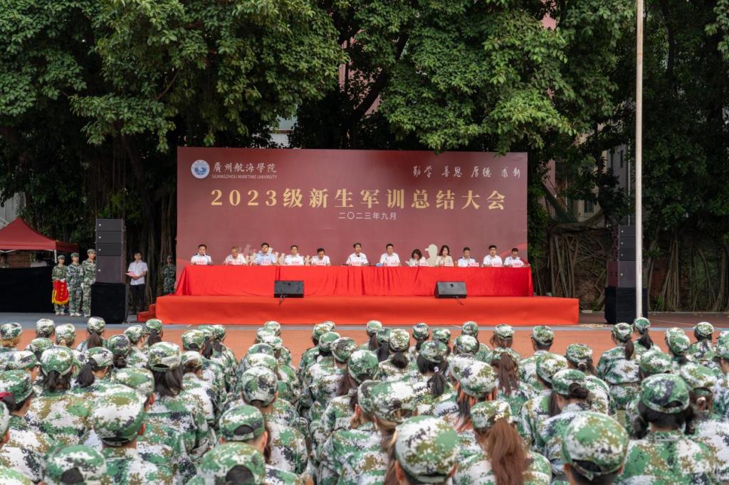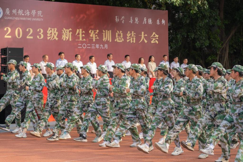 踔厉奋发强国防,凝心聚力铸英才。在14天短暂的军训中,2023级新生在日晒雨淋中铸就坚强、在挥洒汗水中收获成长,希望成为新广航人的2023级新生,以广航为新起点,弘扬“勤学、善思、厚德、求新”校训精神,谨记求学初衷,厚植爱国情怀,传承优良作风,赓续红色血脉,把身体锻炼好,把专业知识学习好、掌握好,让勤奋学习成为青春远航的动力,让增长本领成为青春搏击的能量,用努力拼搏成就美好未来,积极投身海洋强国、交通强国建设,为全面建成社会主义现代化强国、实现中华民族伟大复兴贡献青春力量!