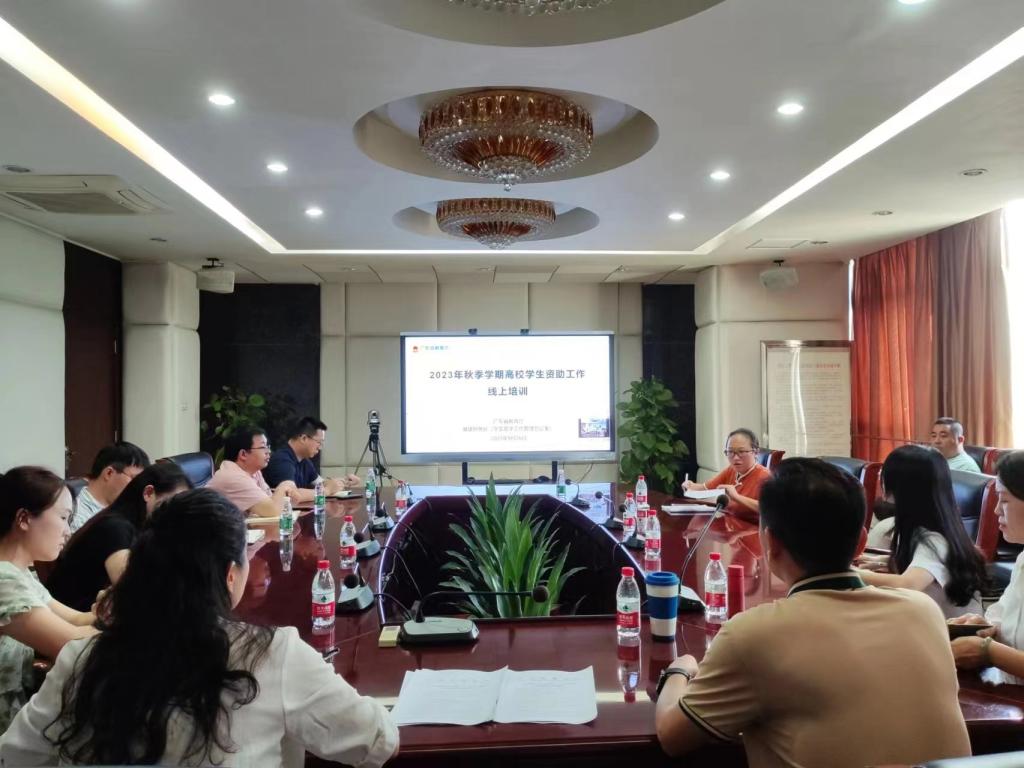 9月26日上午,在行政楼五楼会议室,明胜m88官网召开2023年秋季学期学生资助工作线上培训暨专题会议,明胜m88官网部长陈海航、郑苗副部长、资助中心黄水梅老师以及各二级学院负责资助专项工作的辅导员参加会议。与会人员观看了广东省教育厅组织的高校本专科生和研究生资助政策及信息系统线上培训及国家奖学金评审系统应用线上培训,学习了高校资助系统相关制度及工作要求、资助系统使用常见问题、国家奖学金评审系统操作流程等内容,为我校顺利开展学生资助工作进一步夯实基础。