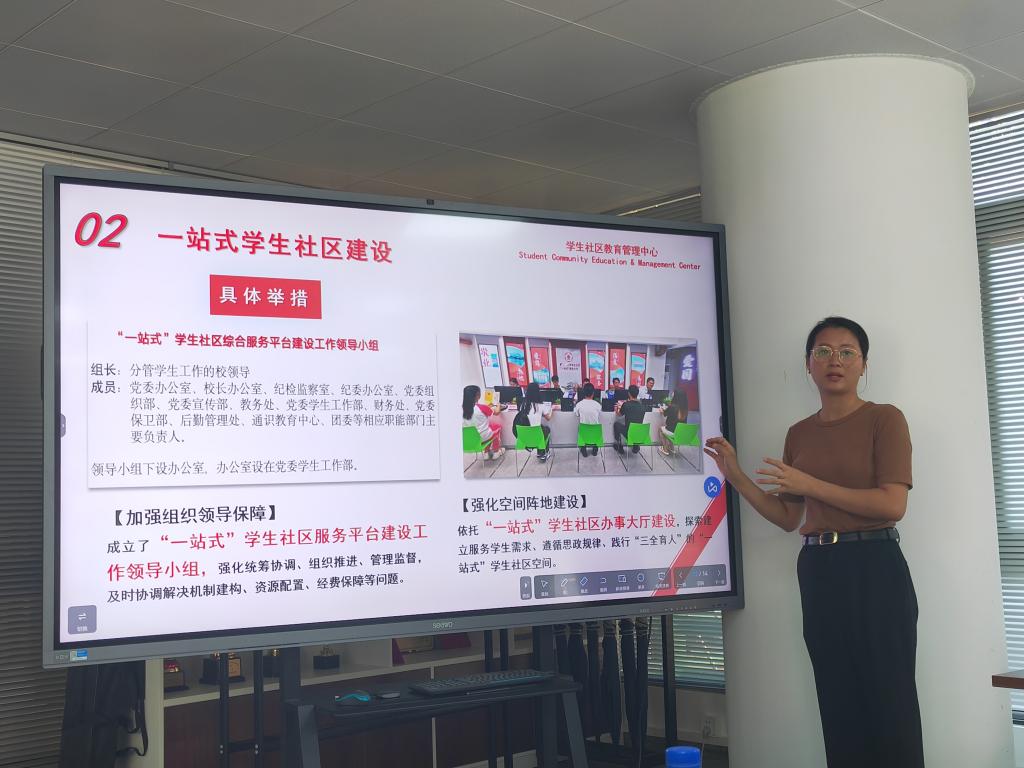 交流会上,许泽浩部长围绕广东工业大学学生工作体系、工作思路方法、辅导员队伍建设、推进“一站式”学生社区综合管理模式建设等情况做了介绍。叶清清、董誉、崔晓娥、陈音等四位教师分别就广东工业大学“一站式”学生社区综合管理模式建设、少数民族学生管理、学生心理健康教育以及学生资助工作进行了详细介绍。