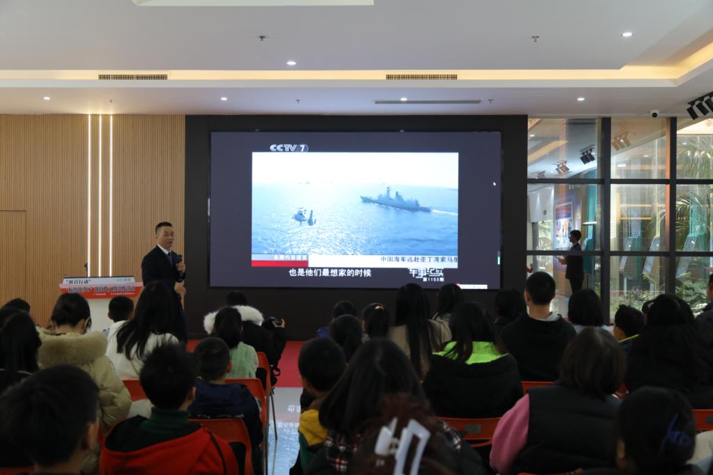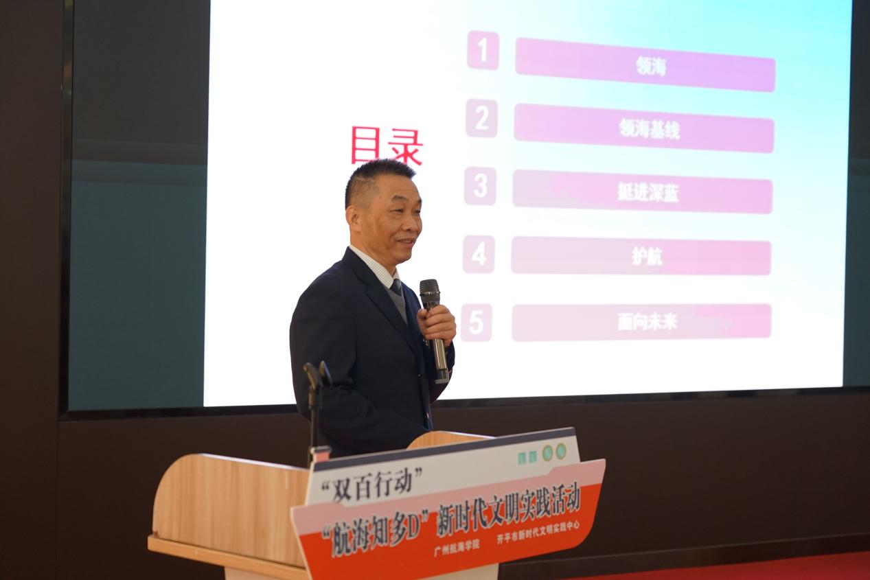 启动仪式后,现场举办了第一期“航海知多D”文明实践活动,由我校赴亚丁湾护航船长刘春荣主讲《护航船长说航海》,明胜m88官网法学232班王兆馨与航海236班柳紫朔两名同学担任现场主持人,吸引了开平市中小学生及家长150多人参与。刘船长生动地向在场亲子家庭讲述了在2013年、2015年先后两次参加中国海军护航编队赴亚丁湾护航的艰难又富有意义的护航经历,介绍了领海、领海基线的基本概念,护航期间一共安全护送25批56艘中外船舶安全经过亚丁湾区域;在与二十三批交接之后,编队在归航途中先后对南非、坦桑尼亚、韩国进行了友好访问、海军官兵当好和平使者,充分展示我国海军的良好形象等护航行动和经历。刘春荣船长这次精彩有趣又有料的讲座,在开平青少年的心中播撒下“热爱祖国、崇尚科学”的种子。