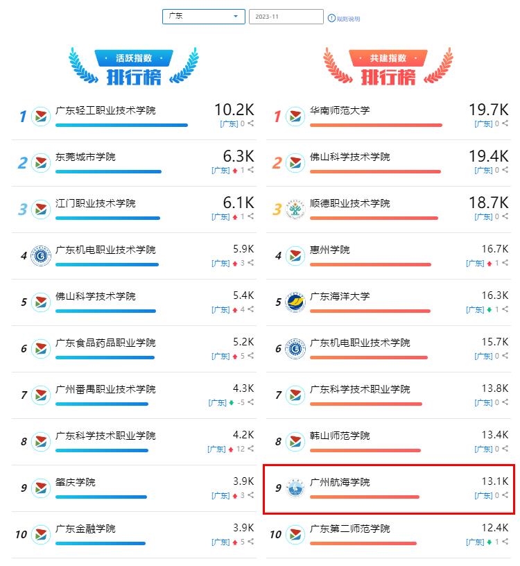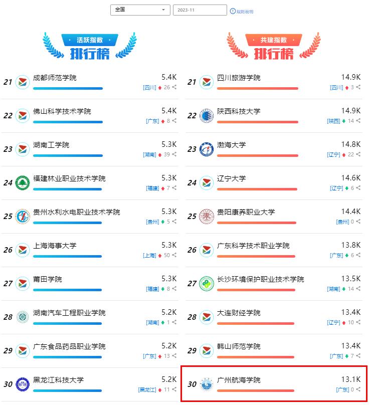 日前,教育部易班发展中心公布了2023年11月全国高校网络易指数排行。我校在此次排行中位列前茅,其中共建指数以13125分获全国第30名、全省第9名,体现了我校网络思政的新成效。