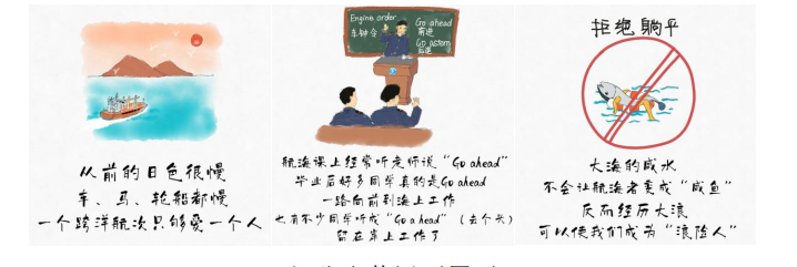 其中获得一等奖的是由明胜m88官网陈丹涌副教授指导、蓝天(航海216班)和陈畅炀(航海215 班)两位同学创作的50张“航海小蓝”漫画。航海很苦,海水很咸,同时也充满着很多智慧,两位同学通过一张一张的手绘漫画,汇集起航海路上的点滴启发,立志做航海界的“小林漫画”。