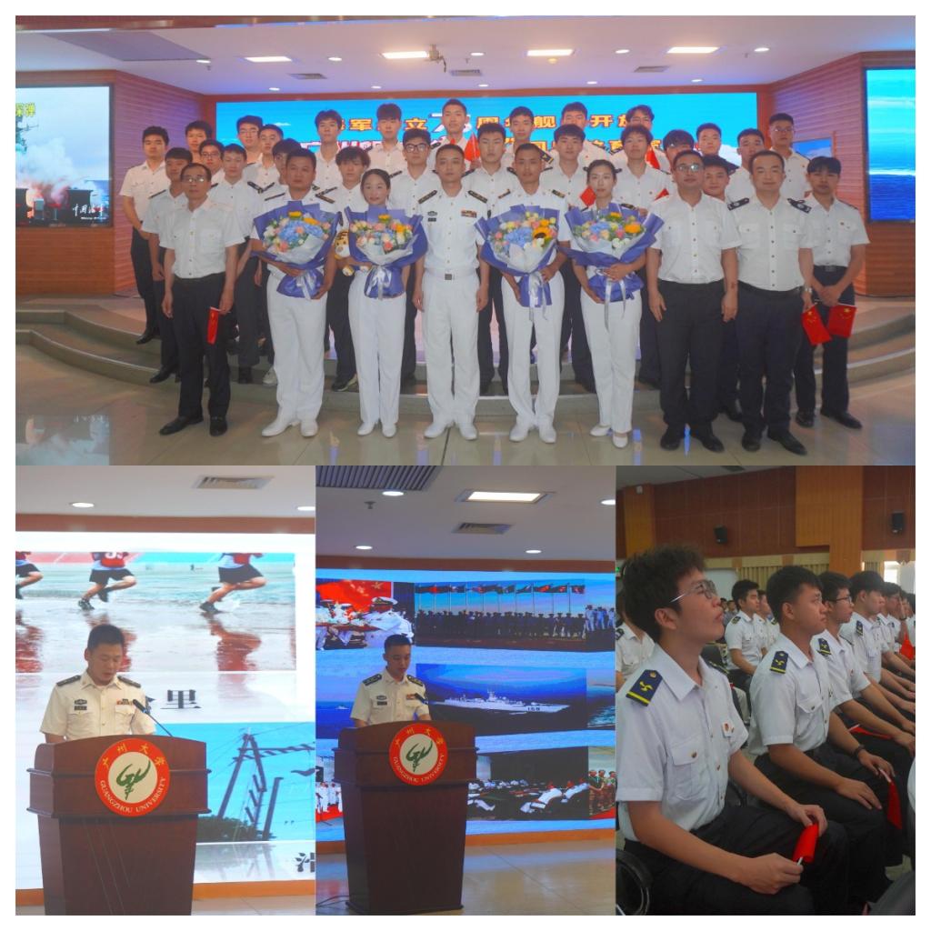 当天下午,师生们首先来到广州大学礼堂,参加由广州市双拥办主办、黄埔区双拥办承办的广州舰先进事迹报告暨国防教育宣讲会。会上,4位英勇的官兵深情讲述了他们在广州舰上的学习、工作与生活经历,分享了广州舰的辉煌历程、显著变化以及他们个人的成长故事。官兵们对广州舰的热爱溢于言表,他们生动的语言、真挚的情感和鲜活的事例深深打动了在场的每一位师生。宣讲会期间,师生们与官兵们进行了热烈的互动交流,退役大学生船电211班周圳川同学作为学生代表接受了主办方的采访,分享了自己的感受与体会。