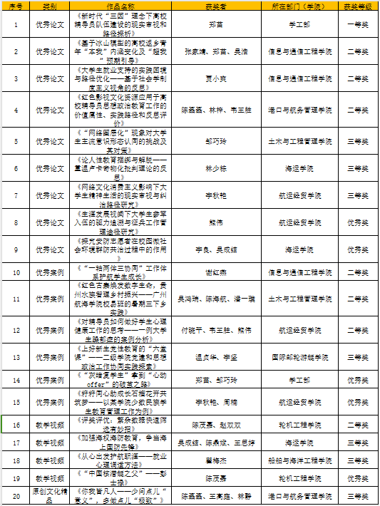 广东高校思想政治工作优秀论文、优秀案例、教学视频以及原创文化精品评选结果一览表