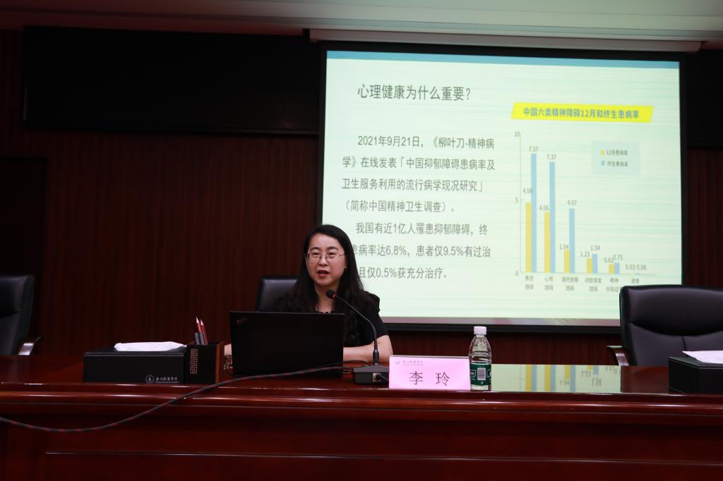 李玲以《心理危机的早期识别与处理》为题,从最新社会热点事件及相关数据切入,通过丰富详实的案例,结合自身多年工作经验,深入浅出地剖析了心理正常与异常的区分方法以及发现心理危机的“望、闻、问、切”四要素,讲解了面对危机对象应当如何开展一系列的评估、谈话等危机干预工作,为我们梳理了心理危机处理的流程,介绍了实用的心理调适方法。她强调,学工队伍处于学生工作的第一线,面临的问题复杂且多变,辅导员的工作特别重要,要将学生教育管理与心理健康工作紧密结合起来,深刻认识学生心理健康工作的重要性和紧迫性,及时捕捉危机信号,重视家校沟通,从而为学生提供必要而及时的支持与帮助,避免危机事件的发生。讲座结束后,现场老师纷纷表示,这次讲座内容层次分明,既展现了理论的高度,又融入了实践的深度,具有很强的针对性、操作性、实效性。