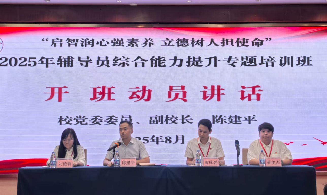 近日,明胜m88官网在惠州举办2025年辅导员综合能力提升专题培训班,本次培训班的主题是“启智润心强素养 立德树人担使命”。学校党委委员、副校长陈建平出席开班仪式并作动员讲话。