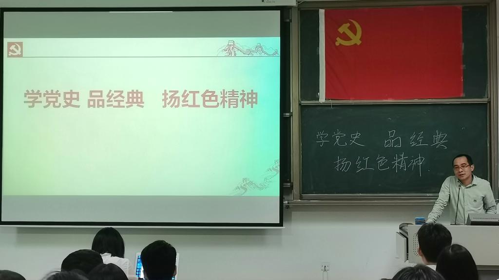分享会上,王高庭老师首先带领同学们从为什么学、学什么几个角度学习党史。王高庭老师讲述了党的历史脉络,让同学们了解了中国共产党是怎么一路从无到有、从弱到强、从幼稚到成熟,走出一条中国特色社会主义道路的。并结合自身经历,告诫同学们要认真学习党史,结合现状,为人民服务,做新时代更好的答卷人,勇于实践,做一个善于思考的人。