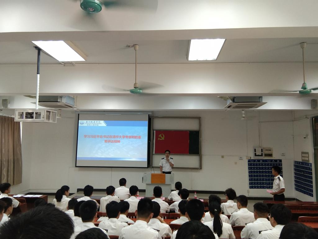 会议伊始,郭世俊老师首先带领现场的师生们学习习近平总书记在清华大学考察时的重要讲话精神。郭老师强调,轮机学生要牢记总书记的殷切希望,认真领会会议精神,身体力行真正做到坚定前进信心,立大志、明大德、成大才、担大任,努力成为堪当民族复兴重任的时代新人,让青春在为祖国、为民族、为人民、为人类的不懈奋斗中绽放绚丽之花。