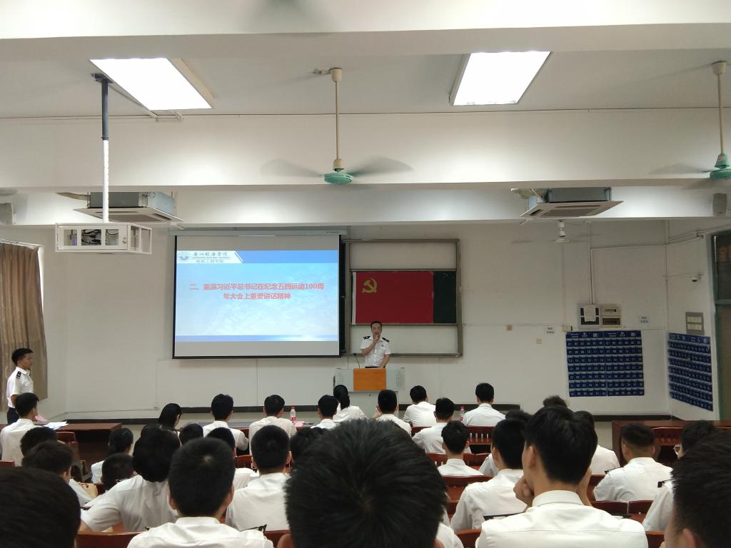 随后,赵垒老师带领大家重温习近平总书记在纪念五四运动100周年大会上重要讲话精神。赵老师谈道,五四青年节来临之际,再次学习习近平总书记在纪念五四运动100周年大会上重要讲话精神既是对历史重温和铭记,更是为了从这段恢弘的历史中汲取前行的动力。现场的师生们在赵老师的带领下,认真学习五四运动性质、五四运动意义、中国青年定位及习近平总书记对新时代青年的殷切期望。