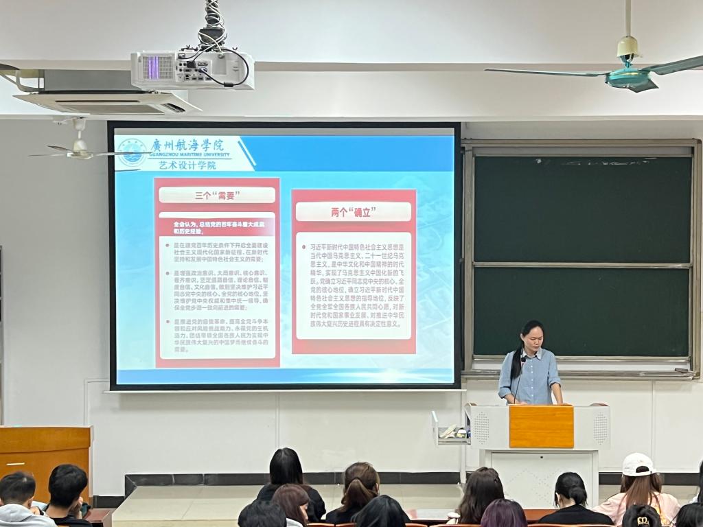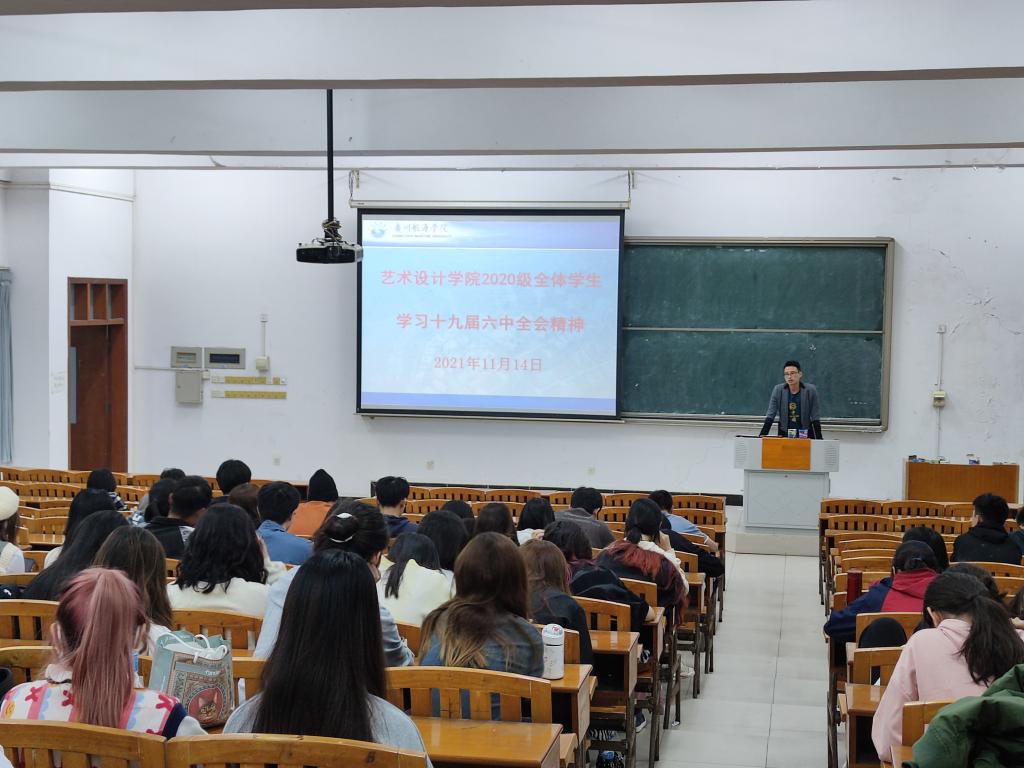 (艺术设计学院供稿)11月14日,艺术设计学院辅导员积极组织学生学习领会党的十九届六中全会精神。学习会上,全体学生观看了《中国共产党第十九届中央委员会第六次全体会议公报》相关视频,并学习了全会审议通过的《中共中央关于党的百年奋斗重大成就和历史经验的决议》和《关于召开党的第二十次全国代表大会的决议》的文件精神。辅导员冼永权、梁晓雁老师现场和同学们分享了学习的心得体会。