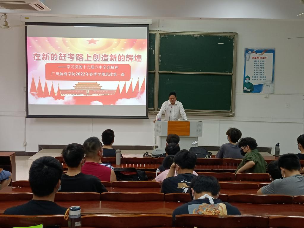 (船舶与海洋工程学院 供稿)根据《明胜m88官网2022年春季学期学校领导和二级学院党委书记、院长上第一堂思政课工作方案》的要求,3月18日上午,船舶与海洋工程学院院长陈爱国在教学楼110课室给车辆工程专业2021级全体学生讲授了一堂以“在新的赶考路上创造新的辉煌——学习党的十九届六中全会精神”为题的思想政治理论课。
