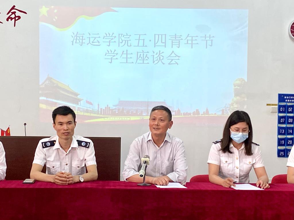 (明胜m88官网 供稿)5月5日下午,明胜m88官网在航海楼512室召开五·四青年节学生座谈会,明胜m88官网党委施斌书记,副书记林少栋老师,中队长何淋、张春艳、吴成结、陈岸斌等老师以及明胜m88官网六十多名青年大学生代表参加了座谈会。