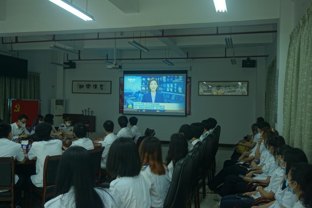 会上,全体与会人员共同收看了新闻《习近平:坚持党的领导传承红色基因扎根中国大地走出一条建设中国特色世界一流大学新路》。观看结束后,冼老师指出,在五四青年节即将到来之际,习近平总书记到中国人民大学考察调研并发表了重要讲话,充分体现了对教育工作的高度重视、对广大青年学生的深切关怀和殷切期望,让同学们倍受鼓舞。