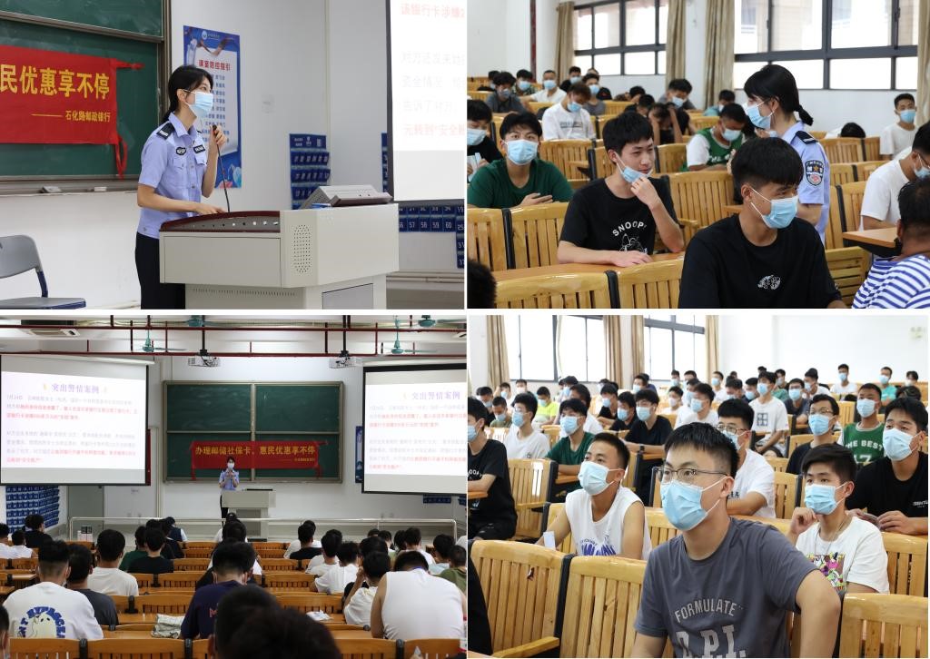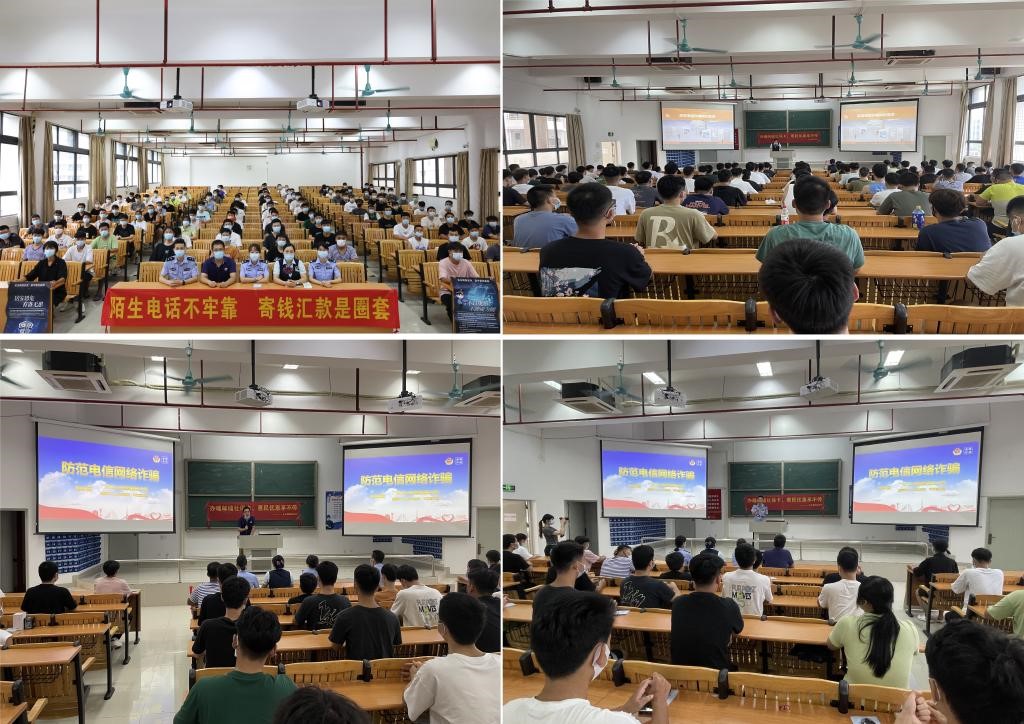 (明胜m88官网 供稿)为进一步提高学院学生防范甄别电信诈骗的意识和能力,强化法治观念,8月31日下午3点,明胜m88官网在健兵楼400室开展“陌生电话不牢靠 寄钱汇钱是圈套”主题讲座。讲座邀请广州市黄埔区公安分局宣讲员邱冰熙等4名警官主讲,学院党委张志斌副书记、广航警务室吴清达警长、中国邮政储蓄银行文冲支行吴楚韵行长、中队长郭世俊和学院20、21级学生代表200余人参加了活动。