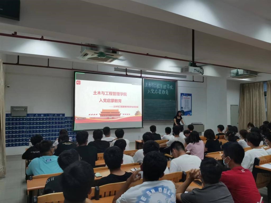 (土木与工程管理学院 供稿)为深入贯彻“不忘初心、牢记使命”主题教育精神,践行“为中国人民谋幸福,为中华民族谋复兴”的初心和使命,土木与工程管理学院学生党支部书记刘艳新于2022年9月16日晚上6点30分在建兵北201、202、203三个课室为全体2022级新生上了一堂生动的入党启蒙教育课。她鼓励2022级新生全面提高自身能力与品德修养,明确认识党员的使命与义务,积极向党组织靠拢,争取早日成为一名党员。