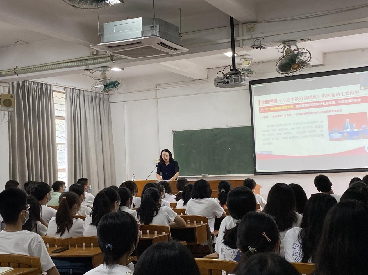 (航运经贸学院 供稿)9月23日下午,航运经贸学院党委书记周楠、院长唐宋元分别在西教205、西教206课室为琶洲校区2022级新生讲授“思政第一课”。本次思政课主要宣讲《习近平谈治国理政》第四卷的重要内容,主题为“牢记党的教诲,立志民族复兴”。