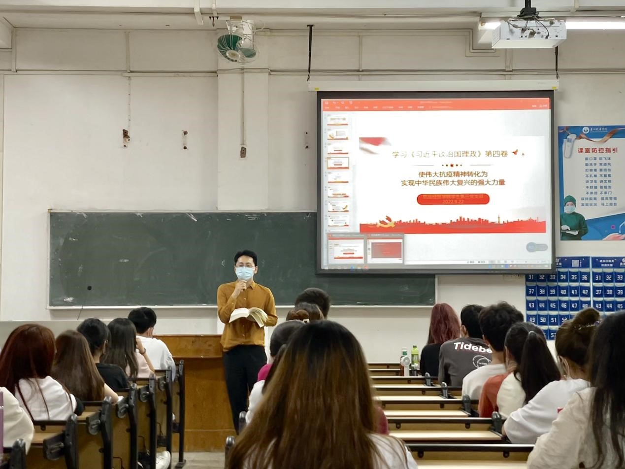 熊伟老师选取《习近平谈治国理政》第四卷中的文章:《使伟大抗疫精神转化为实现中华民族伟大复兴的强大力量》,带领大家读原著、学原文、悟原理,重点学习领会伟大抗疫精神的内涵要义。他希望同学们学以致用,疫情期间全体大学生应“及时关注国家、地市疫情形势与政策”、“严格执行学校防疫规定”、“不信谣不传谣”。他要求各位入党积极分子以身作、谨言慎行;随后,熊老师讲解了疫情传染规律特点、戴与不戴口罩的成本效益、科学防疫的注意事项等,帮助大家进一步了解在疫情防控常态化的形势下如何兼顾防疫与各项学习活动;最后,熊伟老师号召各位入党积极分子充分发挥“传帮带”的先锋作用,积极参与党支部在疫情期间的专项行动,如组织防疫专题测试、线上平台宣传防疫科普知识等。