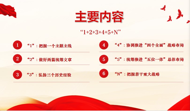 随后,毕副校长重点阐释了《习近平谈治国理政》第四卷的核心内容,精炼概括为“1+2+3+4+5+N”。“1”是把握“新时代坚持和发展中国特色社会主义”一个主题主线;“2”是做好“统筹疫情防控和经济社会发展、统筹发展和安全”两篇统筹文章;“3”是弘扬“坚持党的领导、坚持人民至上、坚持敢于斗争”三个历史经验;“4”是协调推进“四个全面”战略布局;“5”是统筹推进“五位一体”总体布局;“N”是把握强军、港澳台、外交、全球治理等若干重大战略。