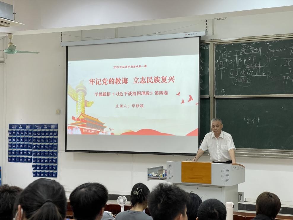 (外语学院 供稿)9月29日下午,毕修颖副校长在教学楼109课室以《牢记党的教诲,立志民族复兴》为题,为外语学院2022级新生宣讲《习近平谈治国理政》第四卷暨秋季学期思政第一课,深入学习贯彻习近平新时代中国特色社会主义思想。
