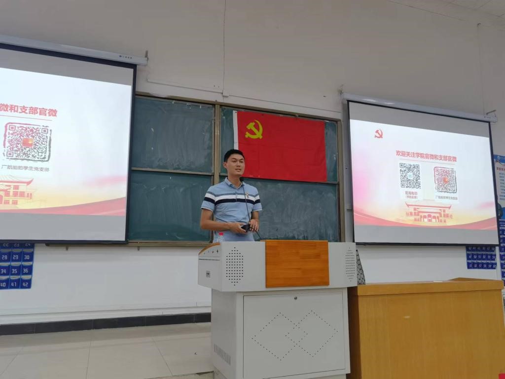 胡嘉玥老师从全国人数、全国党员人数、学院人数、学院当前党员人数这几个数字为切入口,生动说明了党员在群众中应体现的先进性及引领作用。随后师生共同观看视频《你,为什么入党》,通过各行各业党员的朴实回答,对同学们讲述正确的入党动机和党员身负的责任。“组织上入党一生一次,思想上入党一生一世。”胡老师强调正确的入党动机是激励党员进步的不竭动力,是正确世界观、人生观、价值观的反映。胡嘉玥老师向2022级新生介绍入党的条件及发展党员工作流程,强调党的章程的严肃性庄重性,着重介绍入党程序各阶段的注意事项与具体要求,向同学们提出以实际行动和优异表现争取早日入党的期望。胡老师还向大家介绍了学生第一党支部的组织架构及支部活动、优秀党员先进事迹、所获荣誉奖项等,同学们加深了对党组织的了解和向往。支部纪检委员翟梅杰作为2022级新生辅导员,对同学们提出了深切期望。他说:“积极向党组织靠拢是一个循序渐进的过程,如果抱有不纯粹的入党动机,那么这个过程将会是无比困难且乏味的,同学们要树立正确端正的入党动机,参与并在这个过程中获得进步。”同时翟老师还对入团与入党等问题一一做解答,为同学们扫清疑惑。