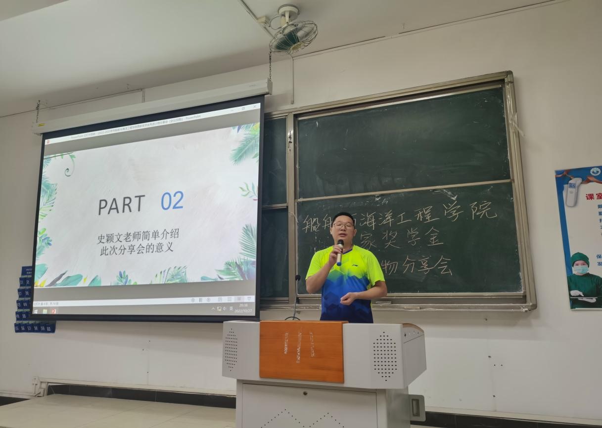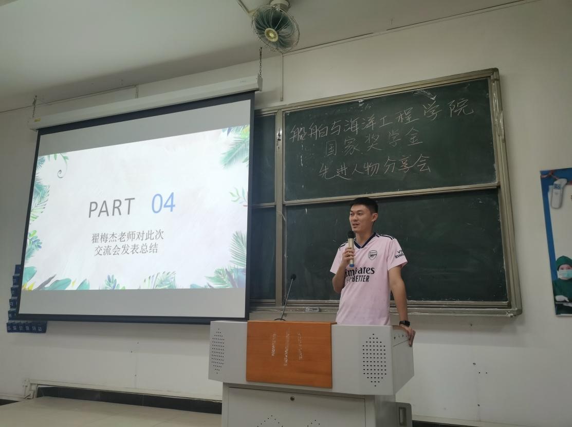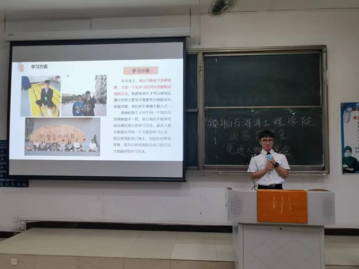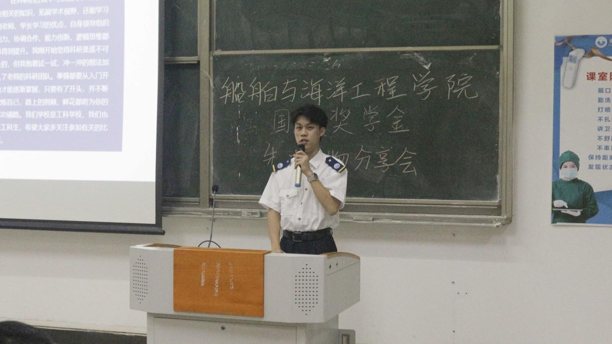 (船舶与海洋工程学院 供稿)为了充分发挥船海先锋的示范引领作用,帮助同学们从容应对大学期间的困惑,激励同学们树立正确人生观、勤奋学习、积极进取,10月24日,船舶与海洋工程学院在教学楼209课室开展了国家奖学金获得者经验分享会。分享会由中队长史颖文老师主持,学院分团委书记翟梅杰老师参加。活动邀请2021-2022学年国家奖学金获得者周辉雄、李泽焕、何其燃三位与同学们面对面交流,分享他们的学习经验,获奖历程。