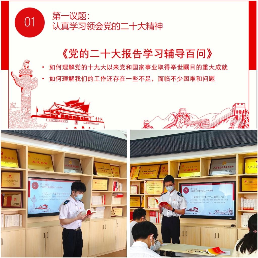 会前,党支部充分运用《党的二十大报告学习辅导百问》、《二十大党章修正案学习问答》等辅导材料,组织全体党员学习了党的二十大报告和新修订的《中国共产党章程》,进一步加深了大家对党的二十大精神内涵的理解把握,明确了党员义务,对发展党员流程有了更具体的认识。