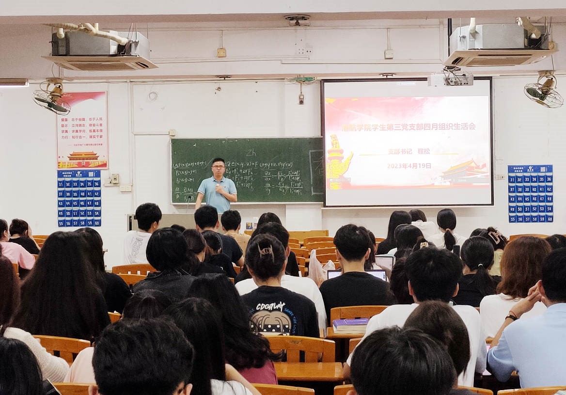 (港航学院 供稿)为深入开展学习贯彻习近平新时代中国特色社会主义思想主题教育工作会议重要讲话精神,贯彻落实党的二十大精神,港航学院学生第三党支部于2023年4月19日晚上在西教106开展了四月组织生活会,会议以线下结合线上的方式进行,其中3名教师党员、98名入党积极分子、毕业班学生党员参加了本次组织生活会。会议由支部书记程松主讲。