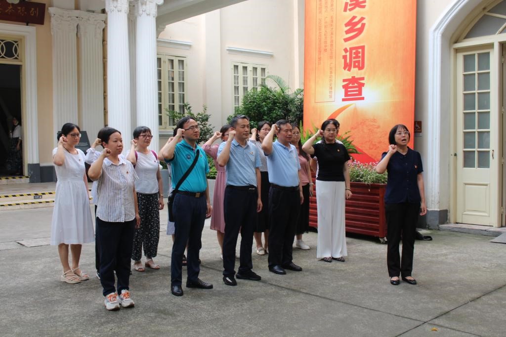 第二站抵达的是广州起义纪念馆。广州起义纪念馆是为纪念1927年12月11日中国共产党领导工农武装起义而建设的,现为全国经典红色景区和广州市爱国主义教育示范基地。港航学院五个党支部分别在广州起义纪念馆门前举行了重温入党誓词的仪式。铿锵恢宏的誓词,一字一句,神圣而豪迈,体现了党员对中国共产党的无限忠诚。走进纪念馆,师生党员通过参观展馆内的文物以及珍贵照片,回顾广州起义筹备、爆发、战斗的全过程,从而深刻缅怀革命先烈,领略英雄模范们前赴后继、舍生忘死的革命精神和奋勇拼搏、无畏艰难的开创精神。