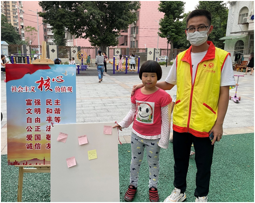 同时他积极参加社会实践和志愿服务,2019年七月,随学院学生党支部三下乡团队前往肇庆牛岐村开展三下乡社会实践活动,进行基层党建和当地特色文化的调研;2020年疫情防控期间,在居住地配合社区工作人员参与疫情防控知识宣传,发放宣传单页、疫情防控手册等志愿服务工作;2020年11月,与支部党员在大沙社区为居民开展社会主义核心价值观宣传志愿服务,曾在2017-2018学年获船舶学院“青年志愿者优秀奖”。