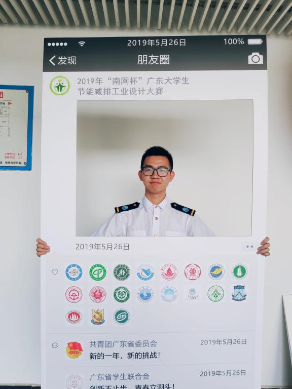 2018年09月,一向喜爱发明创造的他在得知节能减排竞赛的通知后,与同专业同学协商,积极组队并加入老师的项目团队参加了比赛,从最初的选题,开题到文献调研、建模、理论计算直到完成作品。其间,遇到了很多难题,例如:如何查找文献资料、如何运用所学的知识去设计作品结构等。经过反复地查找资料,老师指导,队员之间交流,修改作品,他们的作品才得以完工,最终获得第九届广东大学生节能减排工业设计大赛一等奖。通过这次比赛,不仅将课堂所学知识充分的运用于实践,更重要的是激发了对科研创新的兴趣。
