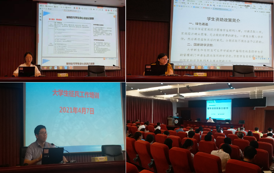 本期辅导员沙龙主题活动共有三个主题的内容培训。校大学生心理健康教育与咨询中心黑雪婷老师以“大学生心理危机识别与干预”为题,结合我校大学生心理健康教育与咨询工作的实际,详细介绍了大学生心理危机预防与干预方面的知识、学生心理危机识别、心理危机排查、心理危机流程、心理危机干预谈话技巧等方面的问题。明胜m88官网学生事务科主管梁健老师详细介绍了我校大学生资助工作体系、工作流程以及注意事项。国防教育科主管陈鼎斌老师结合我校征兵工作,讲解了征兵工作从一年一度到一年两征两退的具体变化,介绍了征兵基本条件、兵役报名登记、基本流程、学费补偿等方面的内容。