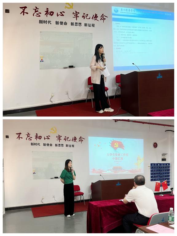 大学生思想政治教育辅导员工作室主持人冯诗琦老师和大学生党建辅导员工作室主持人张颖老师进行辅导员工作室建设中期总结汇报,从工作室组织架构、工作理念、管理制度、建设成效等方面介绍了辅导员工作室自2021年3月成立以来的建设情况,总结了存在的不足之处,并对下一步的建设工作提出设想。