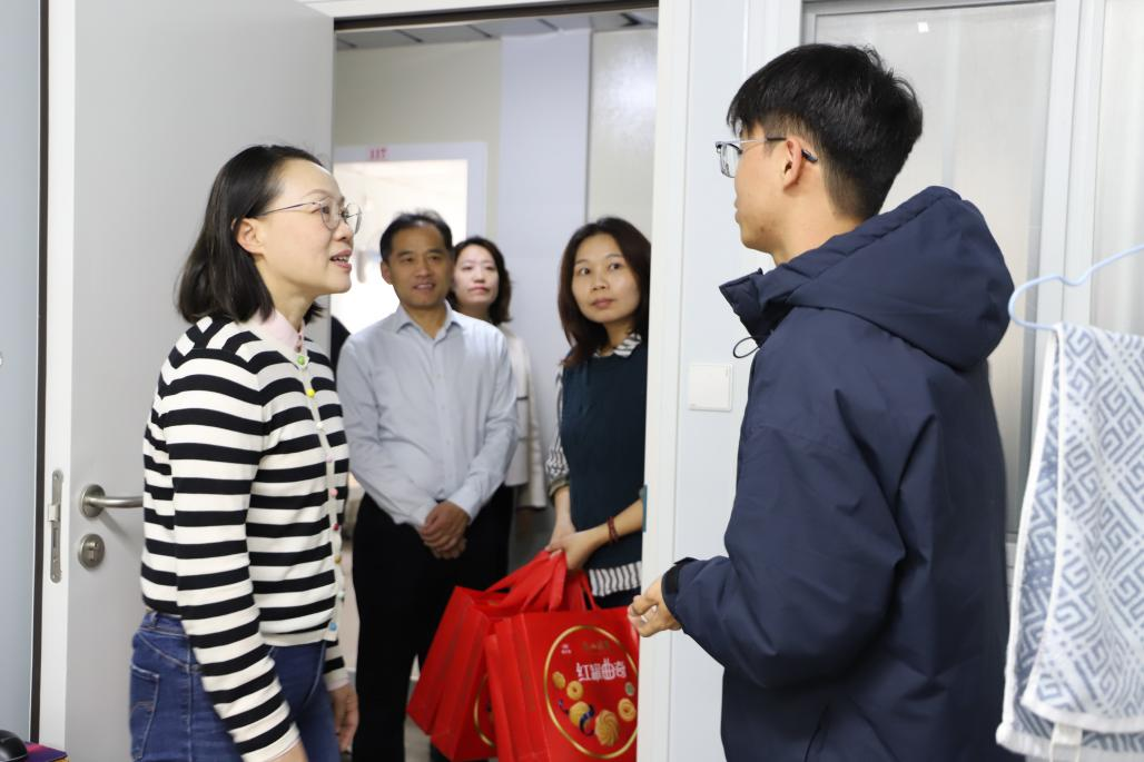 陶韶菁一行分别向宿管员及同学们赠送了新春礼包,一份关爱的礼物,蕴含着无限的祝福;一声真切的问候,传递着浓浓的深情。本次走访慰问彰显了学校“以生为本”的育人理念,在新的一年里,希望同学们能够与学校一起开启新的征程,书写更加精彩的篇章。