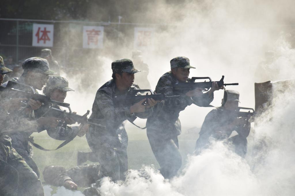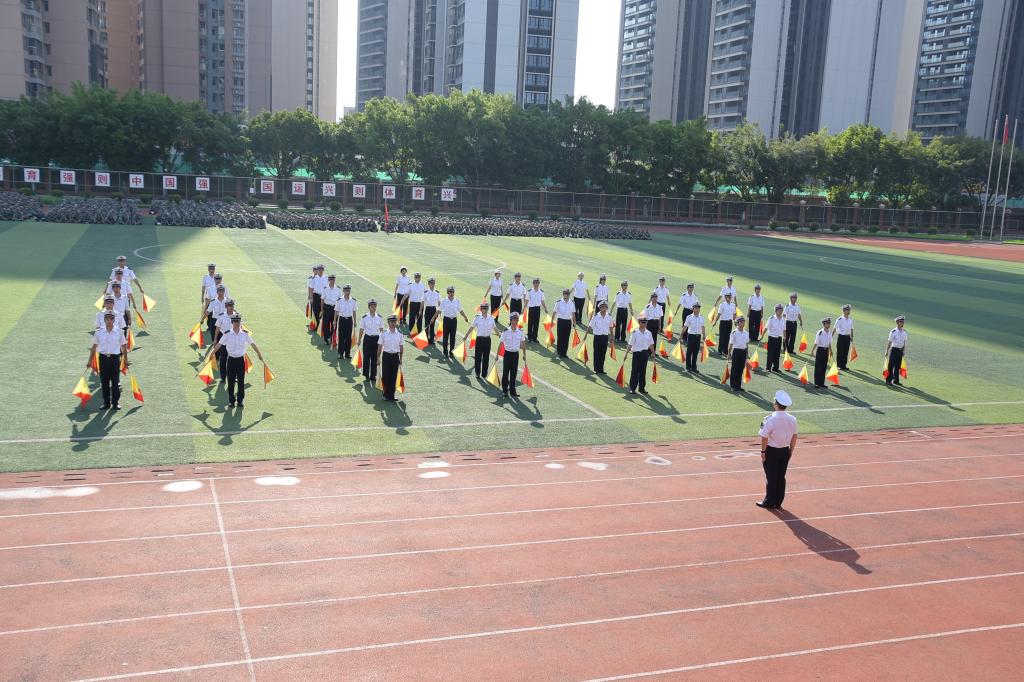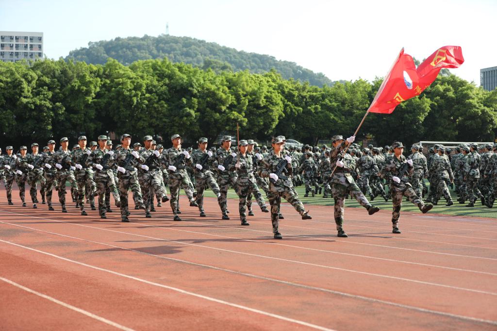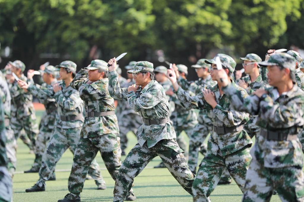 随着号角吹响,红旗冉冉升起,大会在雄壮的国歌声中拉开序幕。在军训科目汇报中,半军事管理学长方队率先登场,接收检阅,各新生受训方队依次正步通过主席台,一个个坚毅的眼神折射出了“青春正当时”的自信,一声声嘹亮的口号表达了“强国必有我”的承诺。旗语、拳术、匕首操、战术分队、手语操、擒敌拳、匍伏刀等科目的汇报展示,充分展现出了新广航人团结协作、奋发向上的精神风貌,现场掌声与欢呼声此起彼伏,气氛热烈高涨。