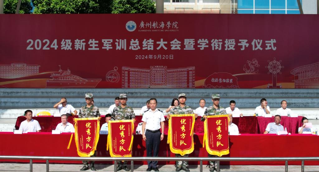 会上,副校长毕修颖代表学校向承训单位广州市黄埔区人民武装部赠送牌匾。与会校领导向军训表现优秀的方队和个人颁发锦旗和荣誉证书。