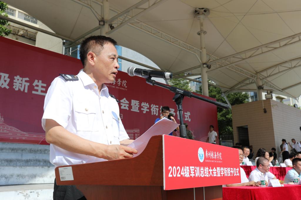 副校长毕修颖、副校长唐强荣、副校长陈建平,黄埔区人民武装部军事科参谋罗嘉豪,学校相关职能部门负责人,各二级学院党委书记(院长)、副书记,2024级全体新生、新生辅导员参加了大会。