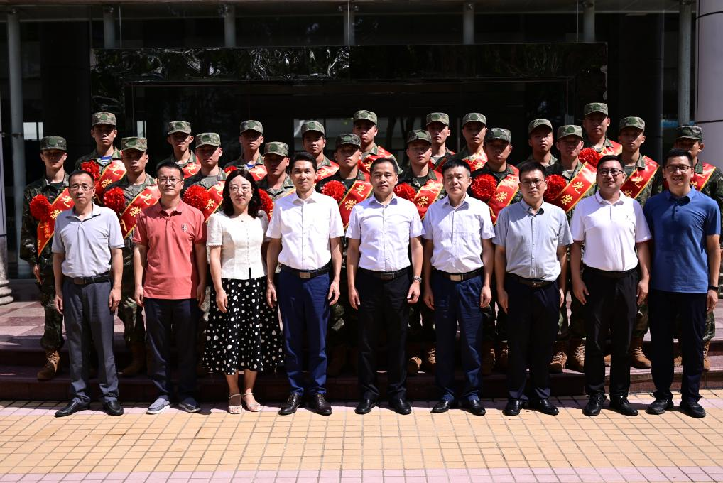 会上,黄咸强介绍了我校秋季大学生入伍情况。19名广航热血男儿身着戎装,胸戴大红花,肩披绶带,个个精神饱满。大家结合自身入伍初心和学校教育管理服务的助力,感恩学校帮助他们实现投身国防建设的军旅梦想。与会老师鼓励大家在新征程中为国尽忠,奋勇争先,勇创佳绩。