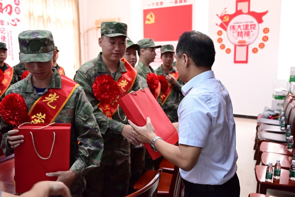 陈建平代表学校党委向入伍学生们表示最热烈的祝贺并致以节日的问候。他指出,作为全省基层武装部试点单位,学校今年已有21名毕业生入伍,连续四年超额完成省里下达的任务数,再次交出优异的成绩单。军队是一个大熔炉,能够锻炼人的意志,磨砺人的品质,提升人的能力,希望同学们学习到更多的知识,掌握更过硬的技能,培养更坚强的意志,塑造更优秀的品格;军营生活可能会非常艰苦,甚至会遇到很多意想不到的困难和挑战,希望入伍学生们以坚定的信念和顽强的毅力,克服一切困难,勇往直前。在为入伍学生颁发学校专门定制的入伍纪念品后,他寄语即将奔赴各地军营的广航入伍学生,学校永远是大家坚强的后盾,会时刻关注大家的成长和进步,希望每一位入伍学生都能够在军营中展现出最好的自己,成为国家的栋梁之才,为实现中华民族伟大复兴的中国梦贡献青春和力量。